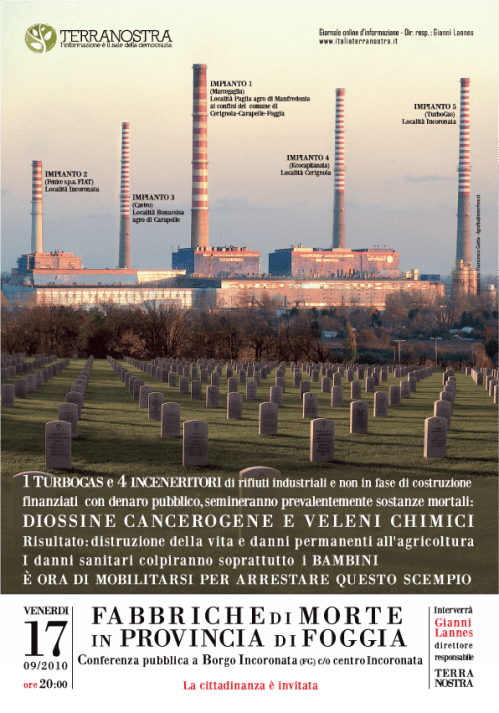 16 risposte a “Conferenza stasera a B.go Incoronata dal titolo: “Fabbriche di Morte in Provincia di Foggia””