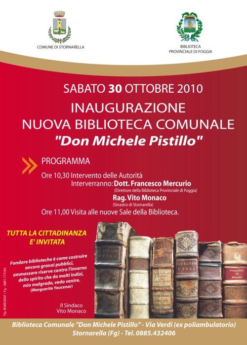 Sabato inaugurazione della nuova Biblioteca Comunale a Stornarella
