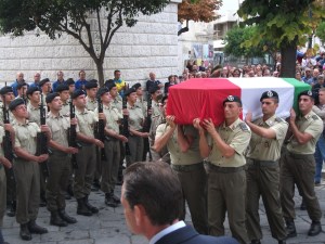 Non è facile esprimere i sentimenti e le emozioni che la gente di Orta Nova ha vissuto nella giornata di ieri ed è difficile perchè forse mai prima d’ora tanta gente si era ritrovata insieme ad affrontare un dolore del genere. Anche per questo è sembrato che la comunità ortese abbia vissuto il suo “undici settembre”. Non a caso ho deciso di accostare questo dramma ad una triste data che ha cambiato il mondo. Ora i cittadini di Orta Nova hanno toccato con mano una guerra che sembra così lontana, ma che invece ha coinvolto e coinvolge tanti figli, tante madri e tanti padri, che ancora oggi  piangono i loro caduti. Dalle ore 16 migliaia di persone hanno salutato il proprio concittadino scomparso ad Herat in Afghanistan. Erano presenti anche il SottosegretarioAlfredo Mantovano, il GeneraleLops, il Comandante Sblendorio, il Presidente del Consiglio regionale Onofrio Introna, il presidente provinciale Antonio Pepe, gli onorevoli Colomba MongielloAngelo Cera eMichele Bordo, il consigliere regionale Giandiego Gatta, i sindaci di Foggia, Cerignola, Carapelle, Stornarella, Stornara, Ordona ed ovviamente quello di Orta NovaIaia Calvio insieme all’Amministrazione Comunale. La celebrazione è stata officiata dal cappellano militare Don Cataldo Letizia, che nell’omelia ha sottolineato come il dolore di queste ore non può superare lo splendore dell’opera compiuta dal Caporal Maggiore Mario Frasca, che ha rappresentato“la miglior gioventù”, quella desiderosa di lavorare per costruire un futuro migliore. A concelebrare la SantaMessale massime cariche religiose ortesi insieme a Mons.Giacomo Cirulli, vicario della Chiesa Madre, che ha benedetto la salma prima dell’arrivo in chiesaFunerali Mario Frasca, l’ultimo saluto di Orta Nova. Al termine della funzione religiosa il fratello Vincenzo ha ricordato Mario e di come con il suo sorriso ha saputo trasmettere allegria ed entusiasmo, così come testimoniato dai tanti amici che si sono stretti attorno alla famiglia dello sfortunato militare. Fuori dalla chiesa un’intera città, sotto un cielo grigio e carico di tristezza, ha salutato il proprio figlio tributandogli un lungo e commovente applauso. Ci mancherà Mario, ne siamo convinti. Anche per questo si potrebbe pensare di ricordarlo in maniera perenne,  forse dedicandogli una piazza che per ironia del destino sta nascendo in questi giorni, proprio di fronte alla casa del militare ortese. Sicuramente non servirà a rivedere il sorriso del nostro militare, ma ci aiuterà a ricordare il suo entusiasmo e la sua voglia di credere, forse per davvero, in un futuro migliore!