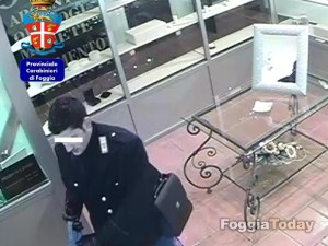 LA RAPINA – Il pomeriggio dello scorso 8 febbraio due sconosciuti travestiti da poliziotti sono entrati all’interno dell’esercizio commerciale. Dopo aver simulato un controllo, hanno invitato i clienti presenti ad allontanarsi. Rimasti da soli con la commessa, hanno estratto le pistole e minacciato la vittima di aprire la cassa dalla quale i due malviventi hanno portato via 4mila euro in contanti. Non paghi del bottino, hanno prelevato i gioielli e i preziosi esposti nella vetrina per un valore complessivo di circa 8mila euro. Prima di andar via, i rapinatori hanno chiuso la ragazza in bagno e si sono allontanati senza essere sorpresi. Fortunatamente la vittima, attraverso una finestrella, è riuscita ad attirare l’attenzione di alcuni passanti, i quali hanno chiamato i carabinieri. Pochi minuti dopo sul posto sono giunti i militari del NOR di Cerignola. I militari del 112 dopo aver repertato le impronte lasciate dai malviventi e ascoltato alcuni testimoni, hanno acquisito le immagini dell’impianto di videosorveglianza e delle altre attività commerciali limitrofe. Nei giorni successivi i carabinieri della stazione di Margherita hanno analizzato i fotogrammi estratti dalle riprese e cominciato a compararle con quelle dei pregiudicati del luogo e dei centri limitrofi, fino ad arrivare all’identificazione di uno dei due rapinatori, il 26 enne pregiudicato di Orta Nova, già noto alle forze di polizia per essersi reso responsabile in passato di episodi criminosi analoghi.
