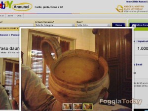 Era questo l’annuncio che fino a questa mattina campeggiava in bella mostra su Ebay, il principale portare di annunci on line, prima che, contattato per le dovute spiegazioni, l’autore (un inserzionista di Torino), intimorito, lo togliesse. Un reperto archeologico (ma non è l’unico, ce ne sono a decine) postato sotto il nome di “Vaso dauno” che, stando alle rassicurazioni del venditore circa l’originalità del pezzo (“dauno al 100%” garantisce al telefono, “mia madre è di Orta Nova“), racchiuderebbe un sé un inestimabile valore storico-culturale. A prima vista si tratta di un vero “Kyathos”, l’equivalente di un grosso mestolo moderno risalente all’epoca Daunia, cioè al VI-V sec. a.C. Venduto (o meglio, svenduto) al prezzo di 1000 euro sul portale, alla stregua di un abito “mai indossato”, un paio di scarpe “nuovissime” o di un cellulare “completo di cavetto, caricabatterie e smart card”. Sacrilegio. Gli archeologi lincerebbero il malcapitato ed ingenuo (perché vogliamo credere alla buona fede) venditore. Contattato ci spiega che morta la madre, di Orta Nova, uno dei luoghi di maggior presenza di antichi reperti, le pulizie nella casa di famiglia hanno fatto affiorare simili gioielli storici. “Io non me ne intendo, non sapevo cosa farmene e ho deciso di venderlo” ci dice l’ignaro venditore. Ma la legge non ammette ignoranza. “Ammesso che si tratti di un Kyathos originale – spiega il maggiore del comando provinciale della Guardia di Finanza, Franco Tuosto – venderlo, su Ebay o per altre vie, è un reato. Anzitutto del possesso va fatta subito denuncia alla Soprintendenza archeologica. Quindi bisogna comunicare la volontà di vendita al Ministero dei beni culturali, che ha diritto di prelazione sull’acquisto. Solo in caso di disinteresse del Ministero, si potrà cedere il bene, ma sempre denunciando le generalità del venditore e dell’acquirente“. “La legge italiana ‘Bottai’ del 1939 e le successive modifiche parlano chiaro” riferisce la dottoressa Annamaria Tunzi della Soprintendenza dei beni archeologici di Puglia, “e anche se viene riconosciuto il legittimo possesso, ci sono restrizioni per la vendita di reperti di quel valore”. Sul portale di quei reperti ce ne sono a decine. “E’ ovvio – continua la dottoressa Tunzi – che la legge italiana regola le compravendite in Italia. Il sito, tuttavia, è internazionale. In altri Paesi vigono regolamentazioni diverse”.