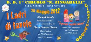 Appuntamento nel pomeriggio presso il cineteatro Cicolella di Orta Nova per il musical “I ladri di favole”, messo in scena dagli alunni della Scuola Elementare I Circolo “N.Zingarelli” di Orta Nova. I ragazzi metteranno in scena questo inedito musical, liberamente tratto dall’omonino libro di Rosa Tiziana Bruno. L’ingresso è previsto per le 16:30, mentre il sipario si aprirà per le ore 17:00, a seguire il coro Enarmonia presenterà lo spettacolo “Special-mente Nonni”. A lato l’invito all’evento, di seguito l’allegato con le attività di fine anno brochure attitvità di fine anno