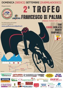 Ancora un’appuntamento con il ciclismo nei Reali Siti con la seconda edizione del trofeo“Francesco Di Palma”, giunto alla seconda edizione. Il percorso si snoda su 111 Km, con partenza ed arrivo a Stornarella, con la cronoscalata del Monte Carpinelli, ed attraversamento dei comuni di Stornara, Orta Nova ed Ascoli Satriano. Per informazioni è possibile consultare il sito http://www.asdfrancescodipalma.it