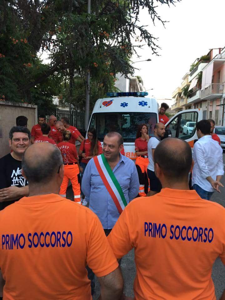 Il sindaco Calamita durante l’inaugurazione del servizioDal 2 al 31 agosto, su tutto il territorio di Stornara dalle ore 20,00 alle ore 2,00, l’Associazione Stornara Sanitas, in collaborazione con l’Amministrazione Comunale di Stornara, assicurerà il servizio di emergenza sanitaria attivo con ambulanza dotata di defibrillatore con a bordo un infermiere certificato BLSD ed un autista. Il servizio di emergenza sanitaria di Stornara avrà sede presso l’ex asilo comunale la cui inaugurazione e’ avvenuta ieri sera. Con l’attivazione del servizio di emergenza contribuiremo ad aumentare il livello di assistenza sanitaria a beneficio sia della cittadinanza residente e sia di tutti coloro che giungono a Stornara per partecipare alle numerose manifestazioni ed iniziative che caratterizzano l’agosto stornarese.Per info: