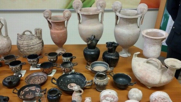 Alcuni reperti ritrovati La Capitanata avrà un nuovo museo. Anzi, avrà una serie di reperti meravigliosi, antichissimi e di valore incalcolabile da utilizzare in una delle tante strutture pubbliche ancora alla ricerca di una collocazione culturale. Merito della Guardia di Finanza del comando provinciale di Foggia che ha restituito alla collettività un vero e proprio tesoro, oltre ad aver arrestano un tombarolo di Orta Nova di 48 anni e un collezionista di Cerignola di 61 anni finiti in carcere ieri mattina (due complici foggiani sono stati denunciati a piede libero). I reperti – ben 350 pezzi – sono stati ritrovati in una casa privata ad Orta Nova. Ma per descrivere la bellezza e il valore dei reperti e delle armi medievali recuperati basta il colpo d’occhio delle immagini raccolte durante la conferenza stampa di questa mattina, alla presenza del vice comandante Pierluigi Calabrese. Ecco il bilancio del maxisequestro. Innanzitutto le armi storiche, risalenti alcune all’inizio del secolo scorso (tra cui sei fucili da caccia calibro 12) e altri del periodo che va dal 1600 al 1800. Nel dettaglio si segnala una pistola modello Colto calibro 25 e una mitragliatrice Mauser C96, calibro 7,63 (famosa pistola da guerra tedesca utilizzata dalla Wehrmacht sia nella prima che nella seconda guerra mondiale) provvista di caricatore. Ma il vero tesoro è rappresentato dai reperti archeologici sequestrati, già consegnati alla Soprintendenza Archeologia, Belle Arti e Paesaggio di Foggia: vasellame, statue votive, monili in oro, pietra e bronzo di eccezionale rarità, riferiti al periodo Dauno, Sannita e Romano, costituenti corredi funerari di tombe depredate. Tra i reperti più antichi, degni dei più prestigiosi musei, vanno citati: un tipico “vaso filtro” dipinto, diversi, eleganti e ricercati crateri con anse a volute decorate da testine di Medusa, una pregiatissima coppia di “ferma trecce in lamina d’oro” e un raffinato contenitore per oli profumati di pasta vitrea colorata. Trafugati in una tomba di un guerriero sannita due pregevoli ganci di bronzo che ornavano il tipico cinturone. Presenti anche i caratteristici vasi “tipo Gnathia” ricoperti di vernice nera e decorati con eleganti motivi vegetali e floreali. Sono in corso ulteriori accertamenti per valutare l’autenticità e l’origine di una reliquia appartenuta al beato Papa Innocenzo XI (1611-1689).