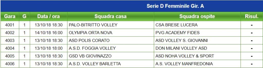 Dopo la salvezza conquistata ai playout nello scorso torneo, riparte la stagione della pallavolo femminile per le ragazze dell’Olympia Sport Orta Nova. La formazione del tecnico Antonio Massa darà il via alla propria stagione domani pomeriggio alle 16:00 presso la tensostruttura di Via D’Angiò, dove per il primo turno del campionato di Serie D, le ortesi affronteranno la Fides Triggiano. Una gara difficile per il sestetto ortese, contro una formazione tra le più quotate del girone A, che vedrà le biancoazzurre cercare una salvezza più tranquilla di quella conquistata nello scorso torneo. Una gara in cui l’Olympia Sport cerca il sostegno degli sportivi ortesi, per provare a rendere la tensostruttura un campo difficile da espugnare per chiunque. Di seguito il programma completo con le gare di Giornata.