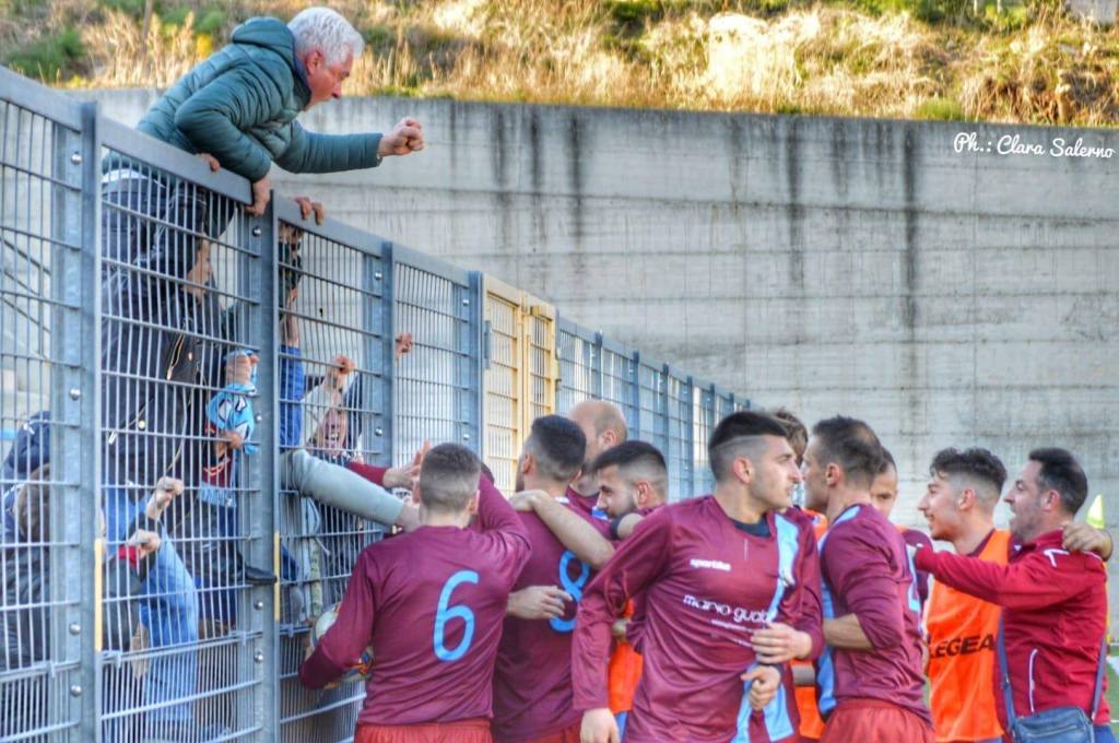 Il sogno è diventato una fantastica realtà, il San Marco è in Eccellenza. La formazione del tecnico Marcello Iannacone supera 3-1 al Parisi la Rinascita Rutiglianese e celebra la vittoria del torneo e la promozione in Eccellenza. Ospiti sorprendentemente in vantaggio con la rete di Addante, poi proprio il tecnico e giocatore Iannacone mette in rete il gol del pari, che persiste fino alla ripresa, sbloccata dalle reti di Montemitro e Augelli. Grande festa a fine partita per un traguardo storico, che festeggia anche il carapellese Rocco Quaresimale, alla seconda promozione consecutiva dopo quella raggiunta nella scorsa stagione con la Fortis Altamura. Cade invece il Martina, che ad Apricena perde 2-1 con lo Sporting, ormai certo di un posto nei playoff, dove troverà in semifinale l’Audace Barletta che batte in casa lo Spinazzola. Vincono anche Real Siti e Sporting Donia, i verdeazzurri al Cianci superano in rimonta la Vigor San Paolo 5-1, baresi in vantaggio con Fama, rabbiosa risposta della Real Siti che va a segno con Colonna, Di Francesco, Amoruso e Rizzi. Goleada anche per lo Sporting Donia che a Bitritto supera la Virtus 4-0. Primo tempo equilibrato con protagonista Savio Camerino, che in diverse occasioni salva lo Sporting, poi sale in cattedra Fabio d’Introno che sigla una tripletta, prima della rete del giovanissimo ortese Michele Vitale, all’esordio quest’oggi. In Prima Categoria seconda sconfitta consecutiva per lo Stornarella che ad Andria perde 3-1. La formazione del tecnico Pino De Martino prima fallisce un calcio di rigore, poi va sotto con la rete di Quaquarelli, pareggiata poi dalla diciassettesima rete stagionale di Alessandro Magaldi, ma nella ripresa ancora Quaquarelli e poi Fiore siglano il successo della formazione di Mr. Sinisi. Si complica così il cammino playoff dello Stornarella che vede avvicinasi alle spalle il Borgorosso Molfetta, ora e meno quattro e prossima avversaria proprio dei biancoazzurri stornarellesi. Perde anche il Canosa che resta con due lunghezze di vantaggio sullo Stornarella dopo la sconfitta a Lucera 2-1. In testa tutto invariato con la vittoria 6-0 dello Sly Bari sulla Virtus Molfetta e con la vittoria ad Ordona del Manfredonia 2-1 sulla Nuova Daunia Foggia. Domenica prossima ultimo turno del campionato di Promozione e terz’ultimo turno del campionato di Prima Categoria con il big match tra Borgorosso Molfetta e Stornarella Calcio.
