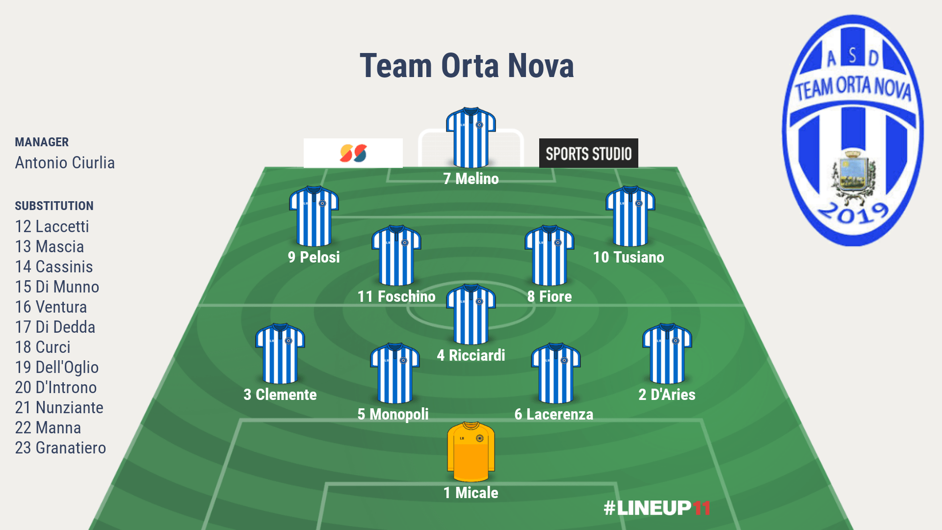 52′ primo cambio per l’Orta Nova fuori Pelosi dentro D’Introno