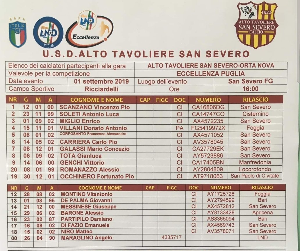Esordio assoluto per l’Orta Nova che al Ricciarelli di San Severo fa il suo esordio in coppa nella gara di andata del primo turno contro l’Alto Tavoliere San Severo