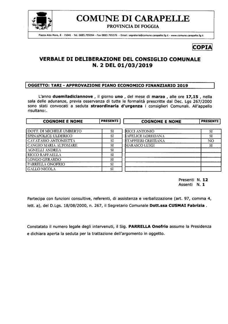 A dimostrazione di quanto detto alleghiamo le dilebere di approvazione dei PEF di Stornarella e Carapelle