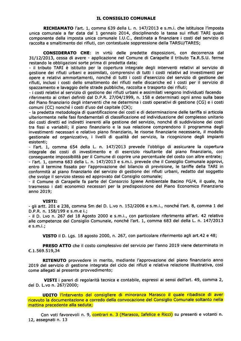 COMUNE DI CARAPELLE 6700 ABITANTI .. COSTO COMPLESSIVO TARI 1.570.000,00