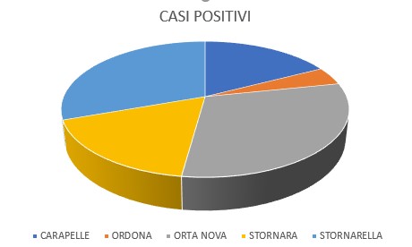 Dopo l’ufficializzazione degli ultimi cinque casi di cui tre positivi ad Orta Nova, e due cittadini di Carapelle, ma che non sono entrati in contatto con la cittadina dei Reali Siti, aggiorniamo il bilancio dei positivi al Covid-19 nei Reali Siti. Il comune ortese sale così a sette casi come Stornarella, resta fermo a quattro casi, come Carapelle, anche il comune di Stornara ed uno ad Ordona, per un totale di 23 casi positivi nel territorio dell’Unione, di cui quattro deceduti. Di seguito la tabella aggiornata.