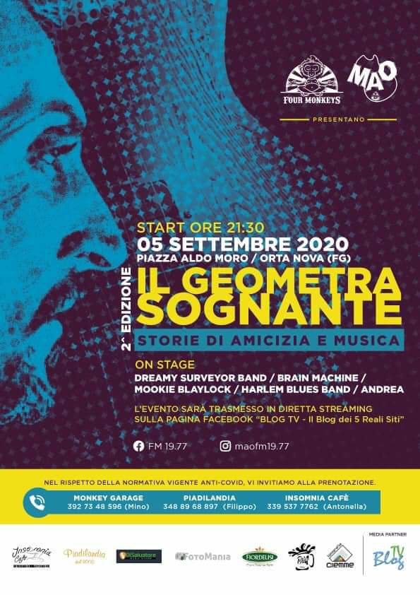 Domani sera Piazza Aldo Moro ad Orta Nova, sarà teatro della seconda edizione del “Geometra Sognante”, evento musicale in cui tanti amici ricorderanno Maurizio Ferrandina, chitarrista ortese venuto a mancare due anni fa. Un evento in cui il rock accompagnerà i ricordi di un personaggio amato da tanti compagni di viaggio, che riproporranno sul palco dell’evento, alcuni brani che hanno caratterizzato il percorso musicale di uno dei pionieri del rock nella cittadina capofila dei Reali Siti, proponendo agli inizi degli anni novanta, un genere fino ad allora conosciuto solo grazie alla radio ed alle musicassette, ma che nella sartoria di Via De Santis, ha vissuto alcuni dei momenti più belli della storia musicale ortese. All’evento prenderanno parte la Dreamy Surveyor Band, Brain Machine, Moockie Blaylock, l’Harlem Blues Band, ed Andrea, formazioni e musicisti con la quale Maurizio ha vissuto momenti caratterizzati dalla passione per la musica e da un sentimento autentico come l’amicizia, che ancora una volta accompagnerà due ore di musica nel ricordo di Maurizio Ferrandina. Diretta dell’evento su Blog Tv https://www.facebook.com/ilblogdei5realisiti/videos/357536718967533/