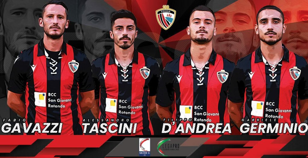 Il Calcio Foggia 1920 comunica di aver provveduto ad ingaggiare i calciatori Gavazzi, Tascini, Germinio e D’Andrea.