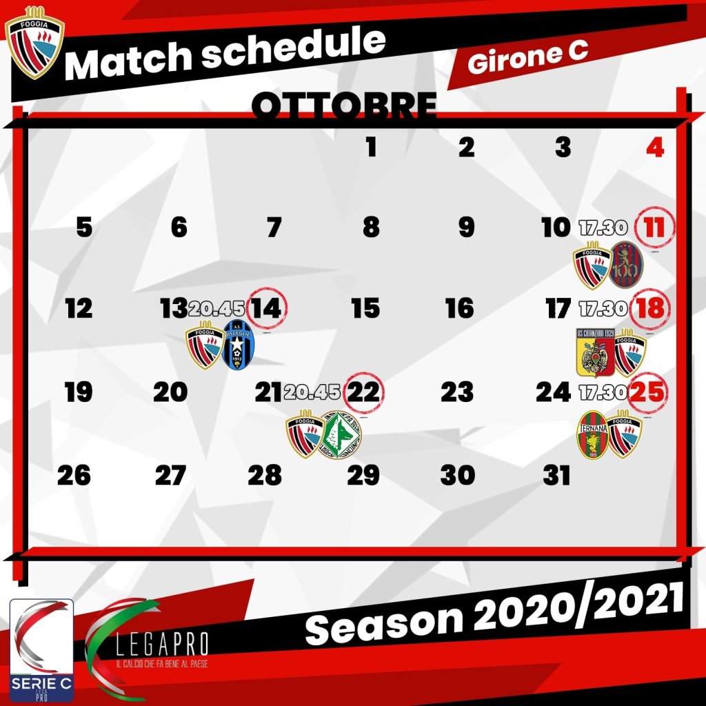 Scende in campo anche il Girone C del campionato di Serie C, mentre è arrivato finalmente il parere favorevole della Covisoc per il Foggia, che farà il proprio esordio domenica 11 Ottobre allo Zaccheria contro il Potenza, dove sono state registrate due positività al Covid-19 che potrebbero mettere a rischiolo svolgimento della stessa gara. Nel frattempo il neo tecnico Vincenzo Maiuri ha iniziato il lavoro con la squadra, che il DS Ninni Corda proverà a rinforzare sul mercato nei prossimi giorni, di seguito il programma della seconda giornata di campionato.