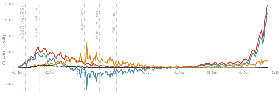 Misure che il governo avrebbe preso in accordi con il Comitato Tecnico Scientifico, ma in contrasto con i governatori regionali, una spaccatura che potrebbe essere ancor maggiore nel tessuto sociale, categorie a rischio, fermate senza alcuna misura di sostentamento, con il dubbio che tale sacrificio possa non essere utile a rallentare la crescita del contagio. Se dallo scorso Marzo ci vollero più di due mesi con un lockdown totale per fermare l’epidemia, ci si chiede ora come possa un mese, con chiusure parziali, rallentare la crescita del contagio, mezza Italia si ferma, e non sa se potrà mai ripartire.