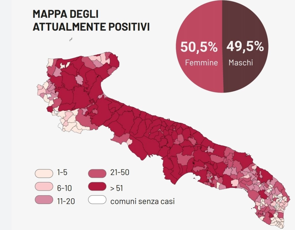 Il totale dei casi positivi Covid in Puglia è di 31.792, così suddivisi: