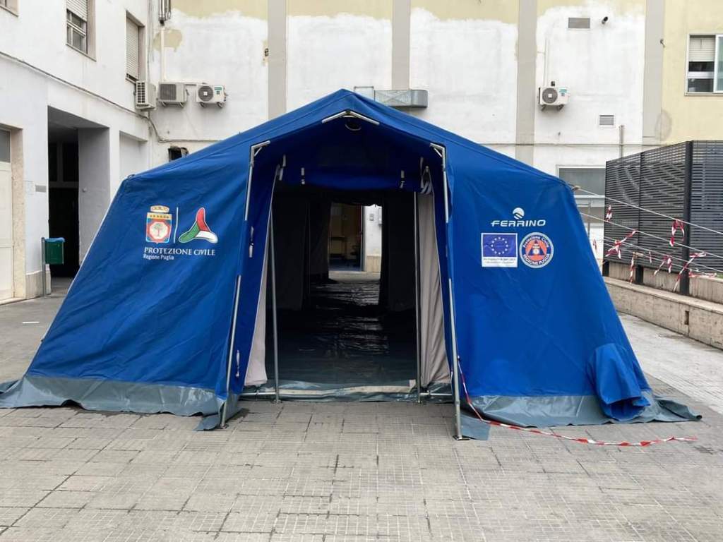 Sono già operative le due tensostrutture della Protezione Civile Regione Puglia del Policlinico Riuniti di Foggia che da oggi fungeranno da ulteriore presidio sanitario a supporto delle attività del Pronto Soccorso, alle cui spalle sono posizionate. Ogni tenda è ampia 25 metri quadrati (in totale sono due): messe insieme creano un’area attrezzata con suppellettili, postazioni, piccole tecnologie e garantiscono un ambiente climatizzato per il trasferimento – con maggiore velocità e con la stessa sicurezza che si ha nelle ambulanze – dei pazienti in attesa di essere poi accolti nel pronto soccorso. L’obiettivo del nuovo servizio è di regolare gli iperafflussi in arrivo garantendo maggiore tutela a tutta l’utenza e agli operatori sanitari; è inoltre accompagnato da un sistema di vigilanza più accentuato per veicolare più rapidamente il deflusso delle ambulanze rendendone la manovra più agevole in caso di incolonnamento che, nonostante il potenziamento dell’organizzazione del Policlinico, può verificarsi.