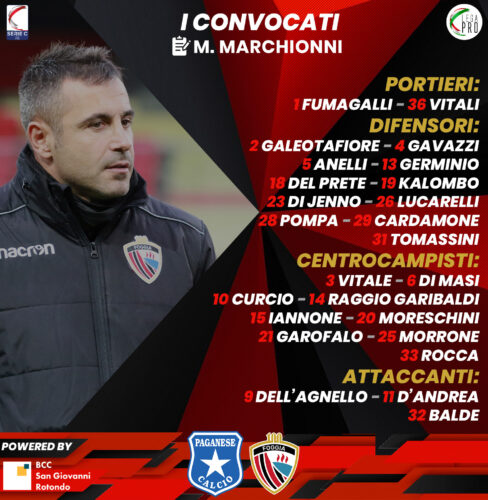 Turno infrasettimanale per la Serie C, che quest’oggi chiude il 2020 con il diciassettesimo turno del girone C. Dopo il turno di sosta torna in campo il Foggia, che alle 17:30 affronterà in trasferta la Paganese. Una gara che arriva dopo dieci giorni di lavoro per la formazione del tecnico Marco Marchionni, che dopo le tre vittorie consecutive contro Viterbese, Palermo e Monopoli, ha avuto modo di lavorare per migliorare la condizione fisica e tattica, alla vigilia di una gara che il tecnico rossonero ha chiesto ai suoi di giocare con motivazione, per chiudere al meglio l’anno solare: ““Affronteremo una squadra reduce da un momento negativo e che avrà voglia di riscatto -ha chiarito Marchionni -dobbiamo essere bravi a badare ad ogni minimo particolare per portare a casa i tre punti, giocando come sappiamo. Il turno di riposo ci ha permesso di allenarci attentamente e con una certa continuità, lavorando sugli errori commessi nelle precedenti partite per migliorarci. I ragazzi sono motivati, vogliono chiudere bene l’anno e farlo con una vittoria sarebbe importante per il discorso legato alla continuità, di risultati e prestazioni. Formazione? Chi giocherà, lo farà dando il 100% perchè ho la fortuna di avere a disposizione un gruppo di calciatori di valore, pronti al sacrificio”.