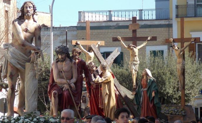 Le restrizioni, che dodici mesi fà, hanno impedito la celebrazione dei Riti della Settimana Santa, caratterizzeranno purtroppo anche la Pasqua 2021, ma nel rispetto delle misure anticovid, concordate tra il Governo e la C.E.I., permetteranno questa volta i tradizionali riti in presenza e l’esposizione delle statue in chiesa, non saranno però celebrate le Processioni del Venerdì Santo.