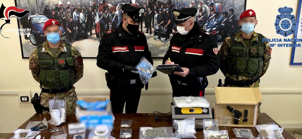 Il 09 marzo 2021, nell’ambito di un servizio di Cooperazione internazionale di polizia, il Nucleo Investigativo del Comando Provinciale Carabinieri di Foggia ed il G.R.E.C.O. Levante della Policia Nacional spagnola, sotto il coordinamento della Procura della Repubblica di Bari – Direzione Distrettuale Antimafia e della Procura della Repubblica di Foggia, con la collaborazione del Juzgado de Instrucción Nº5 de Molina de Segura (Murcia) hanno eseguito una serie di perquisizioni che hanno portato all’arresto di due soggetti italiani (D.C.M. e M.A.). Le attività di polizia giudiziaria, eseguite congiuntamente da personale di entrambe le forze di polizia in Italia e Spagna, si sono concentrate principalmente sull’enclave del quartiere di “San Bernardino” della cittadina di San Severo (FG), nota zona di spaccio e traffico di stupefacenti, nonché nella cittadina di Las Torres de Cotillas, nella Regione di Murcia. Complessivamente, le due forze di polizia hanno schierato più di 100 tra Carabinieri e agenti della Policia Nacional. Nello specifico, oltre ai reparti già menzionati, alle operazioni hanno partecipato i militari del Squadrone Eliportato Cacciatori “PUGLIA”, del Nucleo Cinofili di Chieti, delle Compagnie del Comando Provinciale Carabinieri di Foggia e della U.D.Y.C.O. della Policia Nacional di Murcia. Le operazioni hanno portato all’arresto, a San Severo ed a Foggia, di due soggetti italiani: il primo, M.A., è stato trovato in possesso di circa 35 grammi di cocaina di ottima qualità, due panetti di hashish per un peso complessivo di circa 200 grammi, nonché di una pistola munita del relativo munizionamento. A carico dell’altro soggetto, D.C.M., sono stati trovati e sequestrati circa 100 grammi di marijuana ed oggetti per il peso, taglio ed il confezionamento degli stupefacenti quali bilancini di precisione ed un macchinario per la conservazione sottovuoto, nonché circa 35.000 euro in contanti. La collaborazione internazionale tra i Carabinieri e la Polizia Spagnola, grazie al coordinamento effettuato dalla Direzione Distrettuale Antimafia di Bari e dalla Procura della Repubblica di Foggia con il Juzgado de Instrucción Nº5 de Molina de Segura, ha permesso di eseguire contestualmente ed in maniera efficace l’attività, raggiungendo importanti risultati. Proprio a seguito delle perquisizioni operate, il collegamento tra i due organi di polizia si rende ancor più necessario al fine di approfondire gli elementi raccolti durante le operazioni ed accertare la connessione dei soggetti criminali sul piano transnazionale.