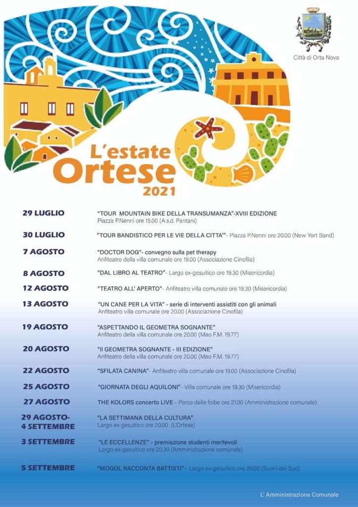 Dopo la manifestazione d’interesse che ha dato la possibilità a tutte le associazioni del nostro territorio di elaborare, insieme all’amministrazione comunale, una serie di eventi per animare l’estate del nostro paese, ecco il cartellone dell’estate ortese.