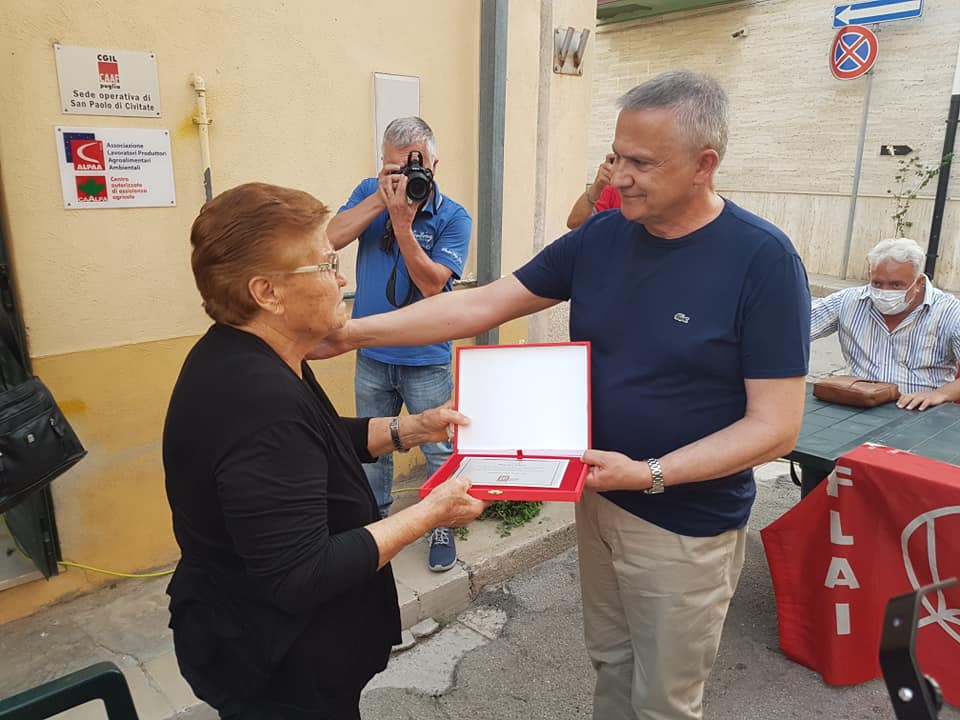 Antonella Vescovi, responsabile della Camera del Lavoro di San Paolo di Civitate, ha ricordato la figura del grande sindacalista facendo ascoltare l’audio della telefonata pubblica attraverso la quale Peppino Fiore, qualche anno fa, portò il suo saluto ai lavoratori riuniti per celebrare il primo Maggio. Commosse anche le testimonianze di Maurizio Carmeno, segretario provinciale CGIL Foggia, e di Antonio De Maso dello SMILE Puglia.
