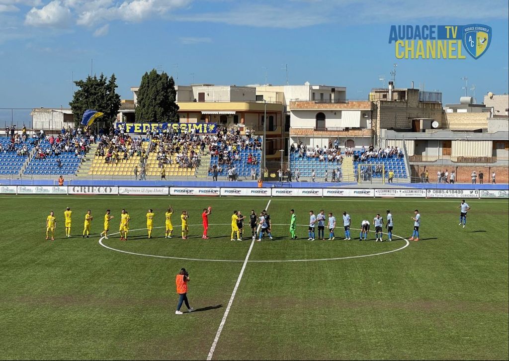 Inizia con un successo la stagione dell’Audace Cerignola, che al Monterisi supera 3-1 il Fasano. Gialloblu in vantaggio al 2′ con il solito Malcore, pareggio degli ospiti al 24′ con Forbes, ma Achik riporta in vantaggio gli ofantini a dieci da termine della prima frazione, nella ripresa al 60′ rete di Giancarlo Malcore, che sigla la sua personale doppietta e ricomincia segnando, come nella stagione scorsa, confermando che i gialloblu potranno contare sulle sue reti per sognare in grande.