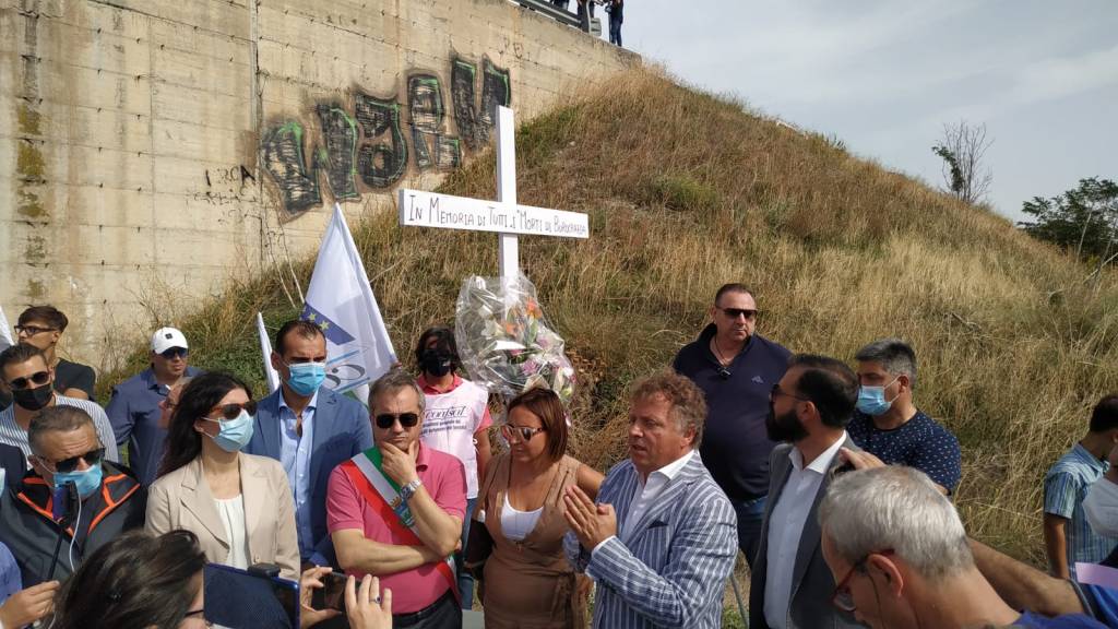 Proprio sotto il cavalcavia è stata piantata una croce di legno “in memoria di tutti morti di burocrazia”. Lì è stato collocato un mazzo di fiori ed è stato rispettato un minuto di silenzio per le vittime di quella strada.