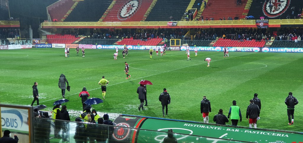 Finisce in parità il derby tra Foggia e Bari valido per il ventinovesimo turno del girone C di Serie C. I rossoneri passano in vantaggio con Curcio al 11′, pari degli ospiti al 26′ con Cheddira, due minuti più tardi è Merola a riportare meritatamente in vantaggio i padroni di casa. Nella ripresa a fare la partita è il Bari, che sigla il gol del definitivo due pari con Mallamo a quattro minuti dal termine.