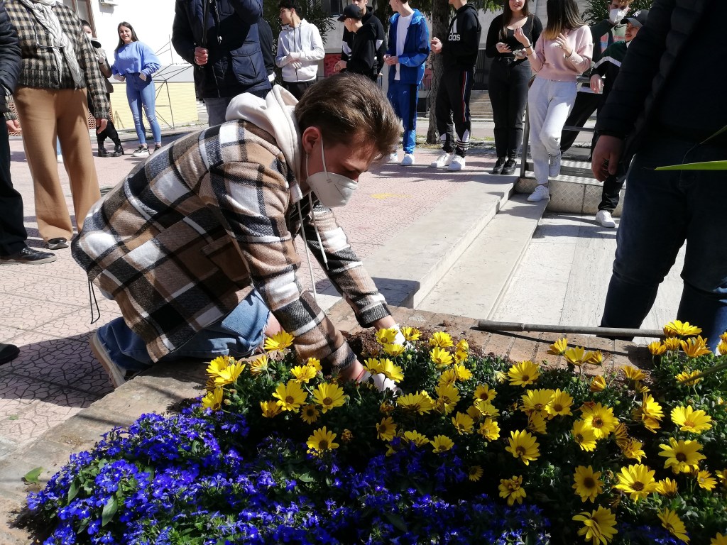 “Come Istituto abbiamo aderito con grande entusiasmo al progetto di ‘Lucera in fiore’ – dichiara Laura Flagella – perché noi siamo parte integrante di questo territorio ed è bello contribuire a un’idea che mi è piaciuta fin dall’inizio, perché porta bellezza alla città, una bellezza che si combina con quella dei fiori, dei colori, della luce. E oggi, con questi fiori, andiamo a ricreare la bandiera Ucraina, quindi un segno di vicinanza ideale alle popolazioni che stanno soffrendo a causa del conflitto. Riteniamo che questi segni coinvolgano anche i ragazzi e li avvicinino anche al presente, alla contemporaneità. Si tratta di gesti simbolici, ma i riverberi sono anche di natura pratica. I ragazzi capiscono che c’è bisogno anche di atti di solidarietà concreta, nonostante stiano vivendo un momento in cui il loro presente è turbato da eventi nefasti frequenti: prima con il Covid e adesso con la guerra”.