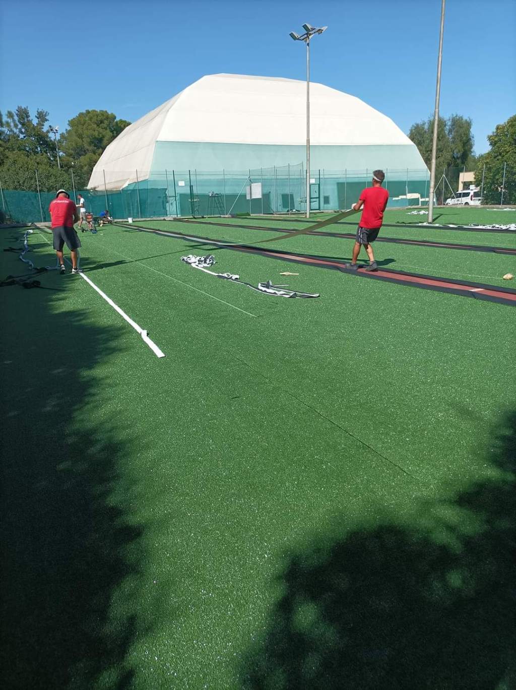 ✅ recupero funzionale dei due campi da tennis con posa in opera di una nuova superficie di gioco da realizzare in erba bicolore artificiale verde, completi di segnaletica;