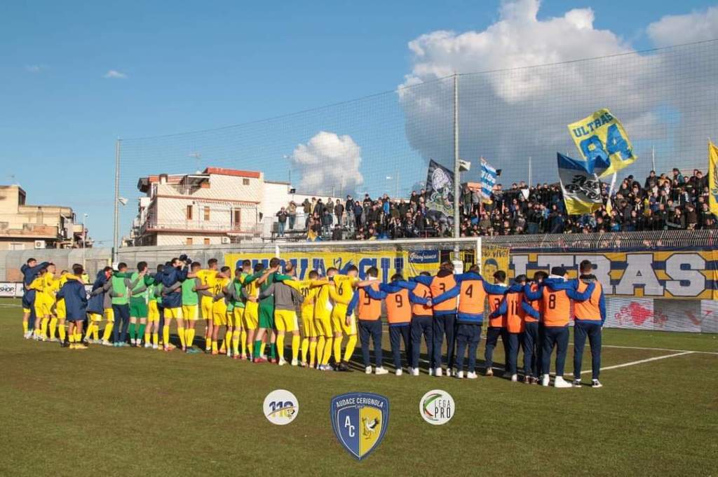 Con le reti di Blondett al 33′ e di D’Andrea al 91′ l’Audace Cerignola batte 2-0 la Viterbese e sale al quarto posto in classifica a quota 23 punti.