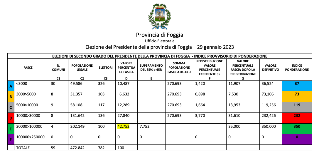 Circa ottocento tra sindaci e consiglieri comunali della capitanata, sono chiamati quest’oggi ad eleggere il presidente della Provincia di Foggia, in corsa l’uscente Nicola Gatta, sindaco di Candela, eletto nel 2018 grazie ad un accordo tra civiche e centrodestra, Primiano Di Mauro, sindaco di Lesina, sostenuto da Lega e diversi esponenti del centrodestra tra i quali i sindaci di Manfredonia ed Apricena, e Giuseppe Nobiletti, sindaco di Vieste, sostenuto dal centrosinistra ed in primis dal vice presidente regionale Raffaele Piemontese. Si tratta di una elezione di secondo livello, con i voti dei consiglieri e dei sindaci che si esprimono in funzione ponderata.