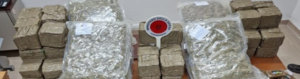 Ad Apricena i Carabinieri hanno sequestrato 80 kg di sostanza stupefacente, nello specifico 46kg di hashish e 34kg di marijuana. In particolare, a seguito della recrudescenza delittuosa nel territorio apricenese che nel giorno di Pasquetta ha vissuto momenti di tensione per una sparatoria che ha portato al ferimento di due fratelli, di cui uno ricoverato in gravi condizioni presso l’Ospedale di San Giovanni Rotondo, la Compagnia Carabinieri di San Severo ha organizzato un servizio straordinario di controllo del territorio con numerose perquisizioni e controlli. I militari dell’Arma, nel corso di un controllo alla circolazione stradale, hanno fermato due soggetti su un motorino che si aggiravano con fare sospetto alle prime luci del mattino nei pressi di Contrada Ingarano. Nel corso del controllo uno dei due giovani è stato trovato in possesso di circa 16kg di hashish suddivisi in panetti da un chilo. Riuscendo a immaginare il percorso compiuto in precedenza dai due giovani i militari della Stazione Carabinieri di Apricena, coordinandosi con gli altri militari impiegati, hanno poi deciso di procedere al controllo di un terreno vicino, adiacente a un’azienda zootecnica. Dopo una prolungata ricerca i carabinieri sono riusciti a rinvenire, abilmente occultati dalla fitta vegetazione, 4 borsoni contenenti ulteriori 30kg di hashish e 34kg di marijuana, giungendo quindi, al termine degli accertamenti di rito a deferire in stato di libertà sia i due giovani fermati sul motorino che i due proprietari dell’azienda e del terreno adiacente.