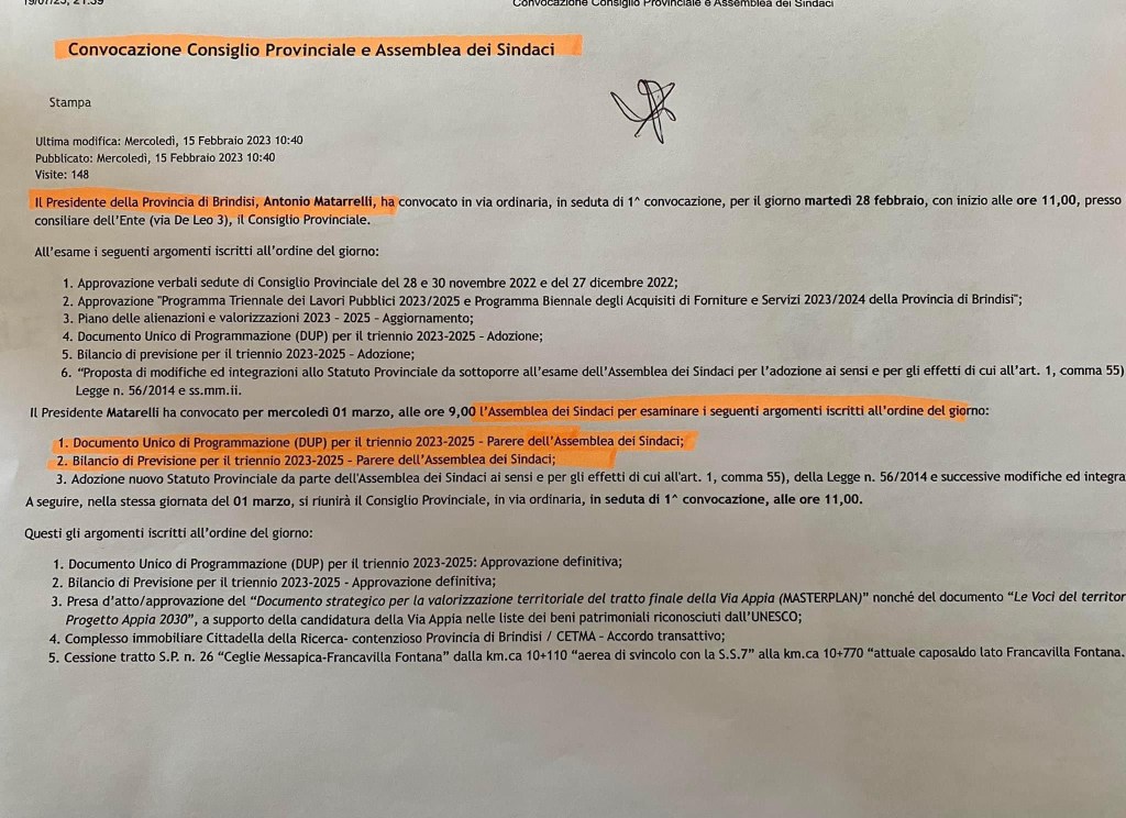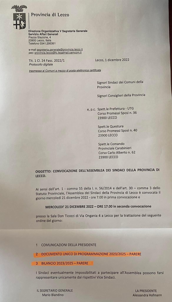 Quella di oggi è stata un’Assemblea dei Sindaci alquanto irregolare, viziata nella forma perché i Sindaci di Capitanata sono stati chiamati ad esprimere un parere sul bilancio di previsione provinciale 𝘀𝗲𝗻𝘇𝗮 𝗮𝘃𝗲𝗿𝗲 𝘁𝘂𝘁𝘁𝗮 𝗹𝗮 𝗱𝗼𝗰𝘂𝗺𝗲𝗻𝘁𝗮𝘇𝗶𝗼𝗻𝗲 𝗮 𝗱𝗶𝘀𝗽𝗼𝘀𝗶𝘇𝗶𝗼𝗻𝗲. A differenza di tutte le Province d’Italia, infatti, quella di Foggia ha trasmesso 𝘀𝗼𝗹𝗼 𝗹𝗼 𝘀𝗰𝗵𝗲𝗺𝗮 𝗱𝗶 𝗯𝗶𝗹𝗮𝗻𝗰𝗶𝗼 , non portando in discussione gli atti propedeutici tra cui il Documento Unico di Programmazione – Dup. Per questo, 𝗻𝗲𝗹 𝗺𝗶𝗼 𝗶𝗻𝘁𝗲𝗿𝘃𝗲𝗻𝘁𝗼, 𝗵𝗼 𝗽𝗼𝘀𝘁𝗼 𝘂𝗻𝗮 𝗽𝗿𝗲𝗴𝗶𝘂𝗱𝗶𝘇𝗶𝗮𝗹𝗲 𝗲 𝗰𝗵𝗶𝗲𝘀𝘁𝗼 𝘂𝗻 𝗿𝗶𝗻𝘃𝗶𝗼 𝗱𝗲𝗹𝗹𝗮 𝘀𝗲𝗱𝘂𝘁𝗮, in modo che i sindaci potessero esprimersi sulla base di una documentazione più completa, come previsto dal Tuel.