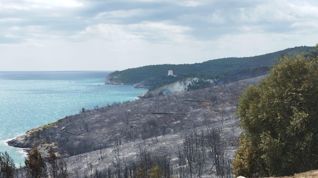 Nelle immagini diffuse dalla Protezione Civile Pegaso di Vieste, i danni e le operazioni di spegnimento delle fiamme.