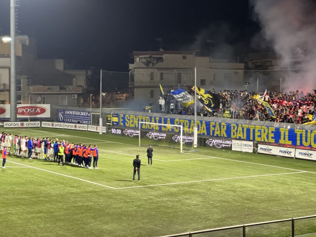 La prima emozione della ripresa è targata Cerignola, Malcore intercetta un pallone che sfugge a Sosa ma trova la risposta di Paleari, un minuto dopo corner per l’Audace, Ligi stacca di testa ma è ancora l’estremo dei campani ad avere la meglio. Altro squillo del Cerignola al 66′, conclusione al volo di Ruggiero da posizione defilata, palla a lato. Doppio cambio un minuto dopo per il Cerignola, fuori Ruggiero e Sosa per Tascone e D’Ausilio. Altra occasione per il Cerignola con D’Ausilio che in ripartenza al 73′ serve Malcore che spreca calciando altro dal limite. Grande chance per D’Ausilio che in velocità supera la difesa beneventana, calcia e trova la deviazione in corner di Paleari, altri due cambi al 81′ per Tisci, fuori Russo e D’Andrea, dentro Leonetti e Rizzo. Al 84’ conclusione di Capomaggio dalla distanza, Paleari risponde e rischia di perdere la sfera, allontana la difesa giallorossa, trenta secondi dopo altra chance con Leonetti servito da un cross di D’Andrea ma colpisce male di testa non trovando la porta. Conclusione di Bolsius dalla distanza al 89′, para Krapikas, una delle pochissime occasioni create dal Benevento nella ripresa, vengono concessi due minuti di recupero finisce così la partita senza altre occasioni, con un Cerignola che recrimina per aver disputato una grande partita ma senza trovare il gol che le avrebbe concesso una meritata vittoria. Arriva il sesto pari in sette gare che permette al Cerignola di salire a quota nove. Sabato trasferta a Teramo contro il Monterosi Tuscia per cercare quella vittoria che sembra ormai una chimera per i gialloblu.