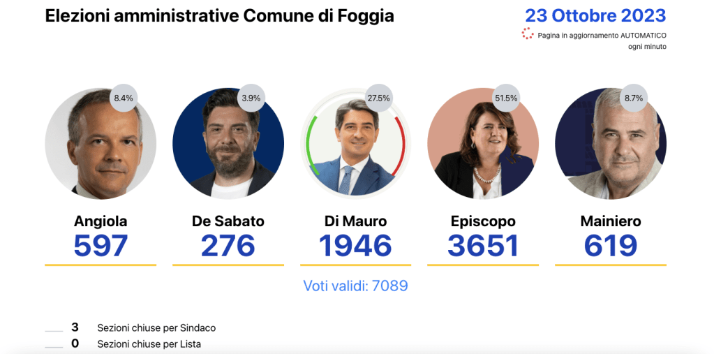 Amministrative Foggia 23, Maria Aida Episcopo verso la vittoria al primo turno. I dati parziali