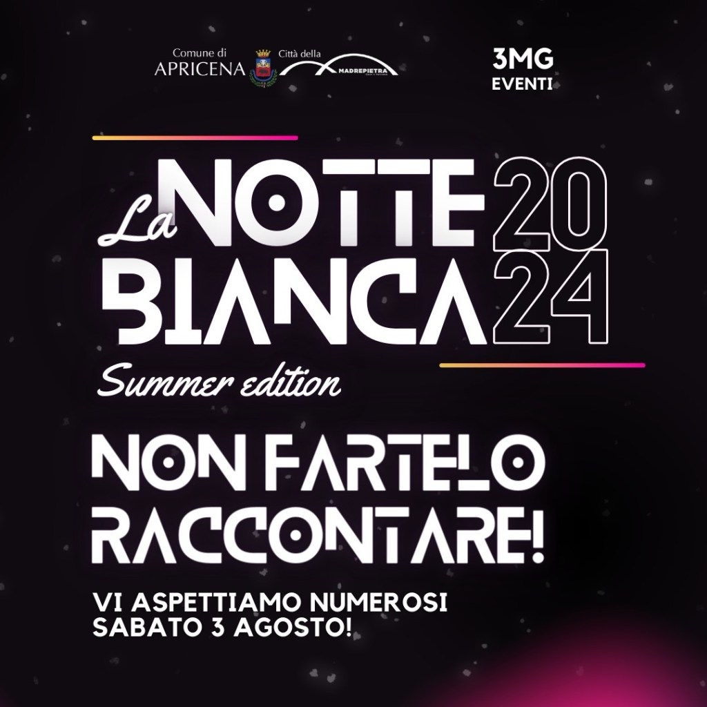 Torna la Notte Bianca di Apricena, che si svolgerà il 3 agosto 2024 in piazza San Francesco. Lo annuncia il sindaco della città del Marmo, Antonio Potenza. Questo evento annuale trasformerà la piazza in un palcoscenico di musica, colori e intrattenimento e offrirà una serata di grande festeggiamento per tutta la comunità. La serata sarà arricchita dalla partecipazione della rinomata DJ Georgia Mos, che animerà l’evento con le sue performance musicali, portando energia e ritmo alla piazza. I presenti potranno ballare sotto le stelle e vivere un’esperienza musicale unica. Inoltre, The Family Affair si esibiranno con un repertorio che spazia dai successi classici ai brani contemporanei. Con le voci di Laura Petrucciani e Ivan Mayer, accompagnati da sei musicisti, il gruppo offrirà uno spettacolo dal vivo coinvolgente e di alta qualità. A rendere ancora più speciale la serata sarà la giovane promessa della musica Anela, che porterà il suo talento emergente e la sua freschezza sul palco, contribuendo a rendere l’evento ancora più memorabile. “La Notte Bianca di Apricena – ha detto il primo cittadino – prevede anche una serie di attività per tutti i gusti: spettacoli, artisti di strada e giostre per grandi e piccini. I visitatori potranno gustare prelibatezze locali e approfittare di sconti speciali presso le attività commerciali del centro.