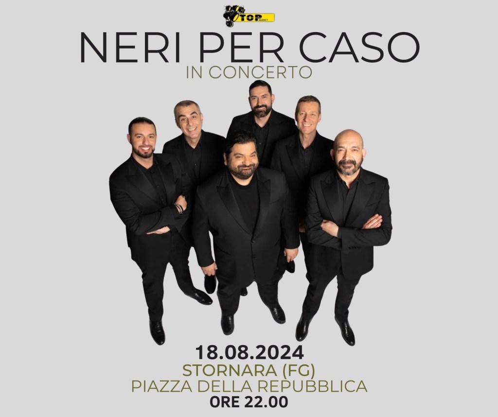 A Stornara il 18 agosto alle 22 in piazza della Repubblica, concerto dei Neri per caso a chiusura della Festa Patronale.
