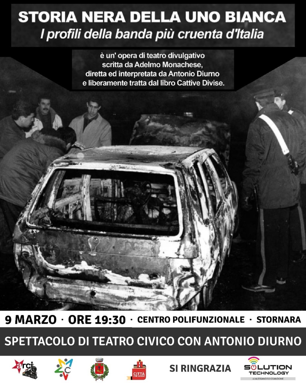 Domenica 9 marzo alle ore 19:30 andrà in scena presso il Nuovo Centro Polifunzionale di Stornara uno spettacolo di teatro civico liberamente ispirato a “Cattive Divise” di Antonio Diurno con il testo di Adelmo Monachese. L’ingresso è gratuito, posti limitati, si consiglia la prenotazione.