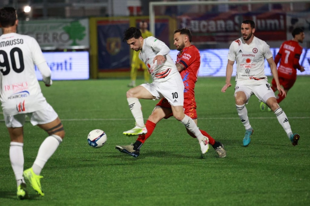 PICERNO (4-2-3-1): Summa; Pagliai, Manetta, Papini, Guerra (32′ st Nicoletti); Franco, De Ciancio; Energe (14′ st Palazzino), Graziani (14′ st Bernardotto), Esposito; Maiorino (21′ at Volpicelli). A disp. Sperlonga, Seck, Garcia, Petito, Flocco, Djibril, Salvo, Cardoni. All. Claudio De Luca