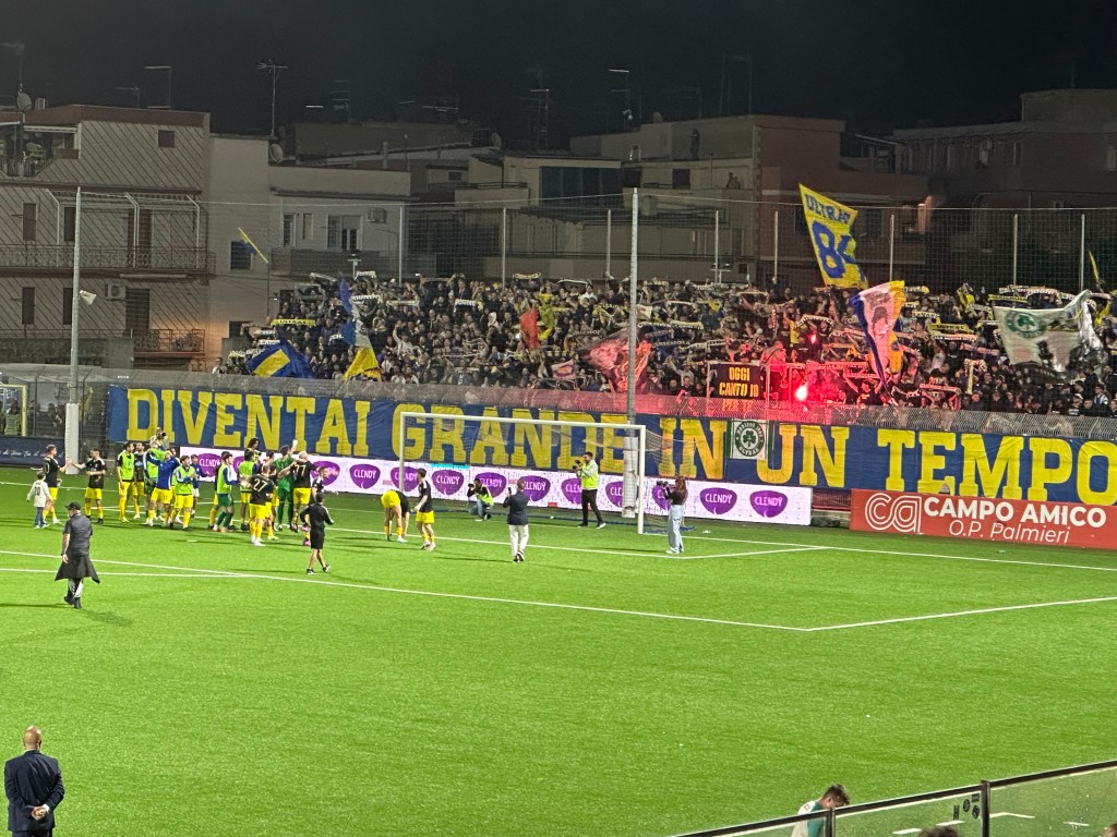 Due cambi per l’Audace all’inizio della ripresa con Romano per Visentin e McJannet per Bianchini, la prima occasione della seconda frazione è al 47′ per gli ospiti con una conclusione debole di de Nipoti tra le braccia di Greco, al 53′ calcio di punizione dal limite per gli ospiti per un fallo di Martinelli su De Nipoti, ci prova Panda che la indirizza sotto ls traversa, ma Greco devia in corner con un bel colpo di reni, non arrivano altri pericoli dalla bandierina per i padroni di casa. Al 56′ fuori Tascone per Achik e Cuppone per Volpe, Raffaele passa al 3-4-3 con Salvemini, Achik e Volpe nel tridente offensivo. Brivido per i padroni di casa al 62′ Vlahovic servito da un taglio di Panada viene fermato da Greco con un grande intervento che salva gli ofantini ancora una volta. Al 69′ esplode il Monterisi per il pari dei gialloblu, Achik va via sulla destra e serve un pallone in mezzo dove Salvemini anticipa tutti e riporta la gara in parità. La gara inizia con un minuto di raccoglimento per memorare la scomparsa del campione olimpico Nino Benvenuti. Parte forte il Cerignola che dopo due minuti ha la prima occasione con Salvemini che non trova il tempo della battuta in porta, passa un minuto ed una ripartenza dei bergamaschi rischia di complicare la partita degli ofantini, Vlahovic in ripartenza viene steso da Greco ed il direttore di gara rifila il rosso diretto per l’estremo gialloblu, che il VAR però annulla rettificando la decisione del direttore di gara in quanto Greco colpisce per prima il pallone. Al 12′ però è Cresoli a gelare il Monterisi con una gran conclusione dalla distanza che supera Greco, vantaggio per gli ospiti. Altro pallone perso dai gialloblu al 16′ al limite dell’area, Vlahovic si avventa sul pallone e tutto solo davanti a Greco calcia addosso all’estremo ofantino, orobici vicini al raddoppio, prova scuotersi l’Audace un minuto dopo, Russo va via sulla fascia sinistra e mette un pallone in mezzo calciato da Tascone che calcia male, pallone sul fondo. Sessanta secondi dopo episodio in area dell’Atalanta, atterrato in area Salvemini, lascia giocare il direttore di gara. Altra occasione per gli ospiti al 20′ De Nipoti calcia a giro dal limite, palla di poco a lato, altra occasione un minuto dopo per il nove nerazzurro, che non trova il tempo giusto della battuta a rete, si salvano i padroni di casa. Ci riprova al 29′ il Cerignola con una conclusione da fuori di Bianchini, palla sul fondo. L’Atalanta chiude bene la sua metà campo e riparte con belle trame, l’Audace trova difficoltà nel trovare spazi, AL 41′ Ceresoli ci riprova dalla distanza e sfiora di nuovo la rete, palla alta di poco, la prima frazione di gioco si chiude dopo due minuti di recupero con i bergamaschi avanti uno a zero, una gara diversa rispetto a quella dell’andata in cui gli ospiti grazie al vantaggio, gestiscono la gara senza offrire spazi agli ofantini. Passano tre minuti ed il Cerignola sfiora il sorpasso, una punizione di Achik trova la deviazione di testa di Romano, palla di poco alta, ma al 73′ passa in vantaggio l’Audace con Volpe che ti testa sugli sviluppi di un corner anticipa tutti e fà esplodere di nuovo il Monterisi, al 74′ primo cambio per gli ospiti con Vavassori per Obric, provano a reagire gli ospiti con una conclusione a giro di Cassa al 78′, palla sul fondo. Ancora pericoloso il Cerignola con Achik al 80′, il pallone viene deviato da Vismara, sul ribaltamento di fronte è decisivo il collega Greco, che interviene su un pallone calciato da De Nipoti, Cassa calcia il pallone di poco a lato. Al 84′ termina la partita di Russo applaudito da tutto il Monterisi, al suo posto Sainz-Maza, nell’Atalanta invece fuori Vlahovic per Alesso e Cassa per Lonardo. Al 86′ la pareggia l’Atalanta con Vavassori con un preciso diagonale sul secondo palo. Vengono concessi quattro minuti di recupero al 93′ ci prova di nuovo Achik che calcia in diagonale para Vismara, è l’ultima emozione di un match che premia il Cerignola, che si qualifica alle semifinali playoff dove troverà il Pescara.