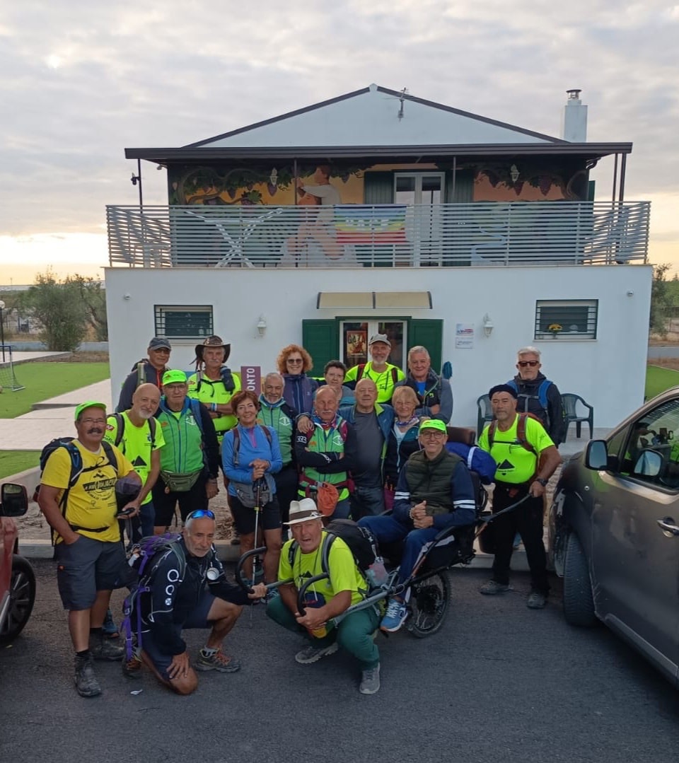 Una decina dei camminatori del Cai sono stati alloggiati presso “Cascina Di Vittorio. Ostello dei popoli”, il B&B realizzato grazie al progetto “Il fresco profumo della libertà”, sostenuto da Fondazione CON IL SUD insieme alla Fondazione Peppino Vismara. Un immobile che fino a poco tempo fa era inutilizzabile e diroccato, è stato riqualificato in un bed and breakfast capace di accogliere turisti, visitatori e pellegrini. Come il gruppo del Cai, accolto con un ricco allestimento di un buffet che ha permesso di conoscere non solo i prodotti tipici del territorio, ma anche quelli realizzati da Altereco che attraverso attività di agricoltura sociale favorisce percorsi di inclusione socio-lavorativa. Al momento dei saluti erano presenti anche consiglieri del Comune di Cerignola Matteo Conversano e Francesco Sorbo.
