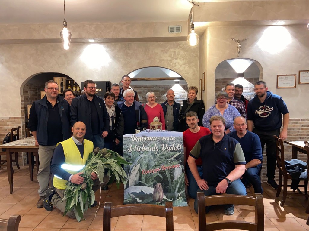 Il 20 novembre scorso un gruppo di agricoltori francesi, appartenenti all’associazione RÈS’AGRI Legumes 29, a nord della Francia, in Bretagna, ha incontrato Giuseppe Bracone, appassionato produttore di carciofi violetti di Puglia di Orta Nova. Hanno risposto alle domande, gli agronomi specializzati nella stessa produzione, Antonio Minafra, Edoardo Antonetti. Dopo il pranzo a base di specialità pugliesi, nonché i principali piatti tipici a base di carciofo violetto, il gruppo proveniente dalla Francia, ha visitato i campi della stessa produzione, nelle campagne di Orta Nova. Tra francesi e italiani è così intercorsa, un’accurata analisi della produzione di carciofi locale. Il carciofo violetto pugliese è una varietà autoctona pugliese caratterizzata da un sapore delicato e una consistenza tenera. La sua colorazione viola è dovuta alle condizioni climatiche e al terreno fertile della regione. È un ortaggio ricco di nutrienti, tra cui carboidrati, fibre, vitamine e minerali, con proprietà benefiche come l’azione diuretica.