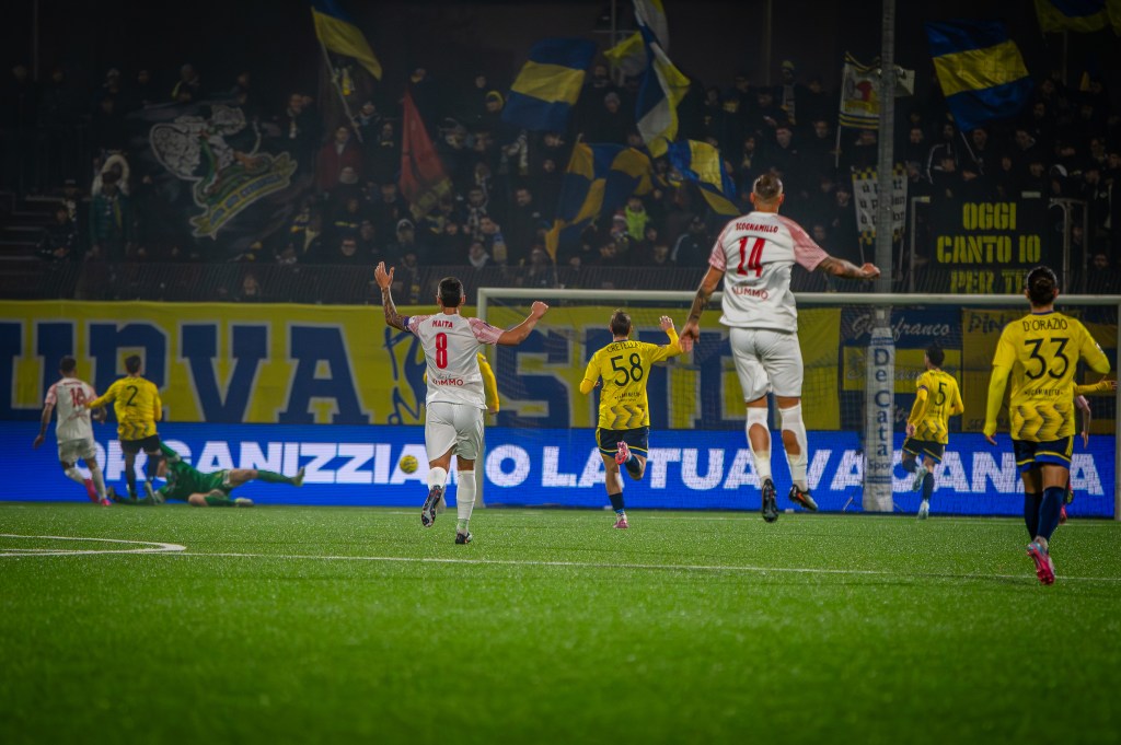 La ripresa inizia senza alcun cambio e con gli stessi ventidue confermati dai due tecnici, al 50′ prima occasione della ripresa per il Cerignola con Gambale che di testa sugli sviluppi di in un corner impegna Vannucchi che respinge, allontana con fatica la difesa sannitica. Tre minuti dopo è sempre Gambale di testa a provarci di nuovo, Vannucchi è attento e blocca la sfera, prova a scuotersi la formazione ofantina che ci riprova dal limite al 58′ con Paolucci al termine di una azione corale, ma il tentativo del centrocampista è centrale e l’estremo beneventano non ha problemi e blocca. Primi tre cambi per il Cerignola al 61′ con Spaltro, Emmausso e Moreso per Gasbarro, Gambale e Paolucci. E’ proprio il neo entrato Moreso a provarci dalla distanza al 66′ ma la conclusione è intercettata centralmente da Vannucchi, ci prova sempre dalla distanza il Cerignola, questa volta con Cretella al 71′ ma il tentativo centrale non impensierisce l’estremo campano. Un minuto dopo altro cambio per il Cerignola, fuori D’Orazio per Cuppone, primi due cambi anche per Floro Flores con Talia per Lamesta e Borghini per Ceresoli. Altri due cambi per il Benevento al 79′ con Mehic per Prisco e l’ex Romano per Simonetti. Ultimo cambio per il Cerignola al 83′ con Ballabile per Russo mentre il Benevento manda in campo Mignani per Manconi. Al 85′ la chiude il Benevento che va in rete alla prima occasione della ripresa con il neo entrato Mignani che servito in area da Mehic salta netto Todisco con una bella giocata e fà esplodere il settore ospiti. Vengono concessi tre minuti di recupero che terminano senza ulteriori emozioni e con il Benevento che si conferma capolista dominando al Monterisi. Per l’Audace Cerignola sarà ora tempo di riflessioni in vista del mercato con il DS Elio Di Toro che dovrà capire quale sarà il futuro di una squadra che chiude nel peggiore dei modi un duemilaventicinque che resterà nella storia per la Serie B sfumata.