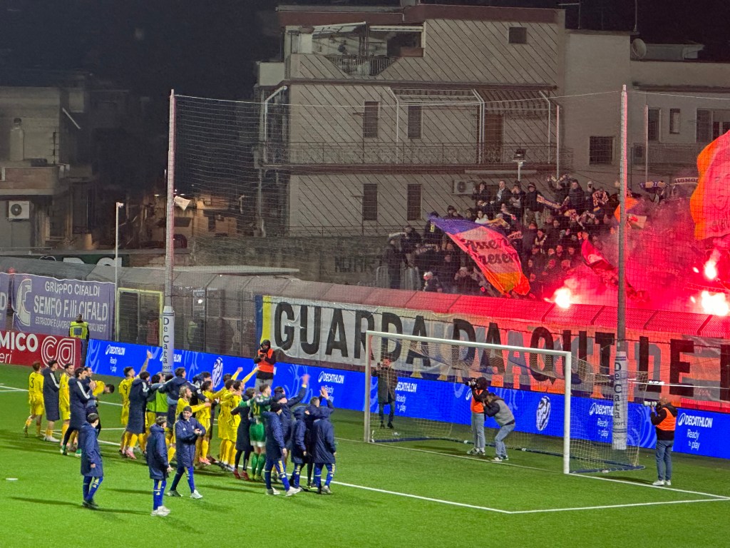 La ripresa inizia con tre cambi per la Salernitana con Ferrari, Achik e De Boer per Quirini, Ferraris e Tascone, la prima occasione della ripresa è ancora per il Cerignola con Cretella da fuori area, conclusione sul fondo. Altro cambio per Raffaele al 60′ con Carriero per Golemic al 63′ sfiora il pari la Salernitana con Lescano che controlla e conclude dal limite dell’area dopo una bella azione dei campani, il pallone colpisce la parte alta della traversa e termina sul fondo, un minuto dopo è Gambale servito da Russo a trovarsi tutto solo davanti a Donnarumma che salva il risultato. Primi due cambi per il Cerignola al 67′ con Gasbarro e Di Tommaso per Ligi e Moreso. Altri due cambi per il Cerignola al 75′ con Spaltro e Ruggiero per Russo e D’Orazio. Al 76′ altro palo di Lescano ma l’azione viene annullata per fuorigioco, viene espulso il tecnico Maiuri per proteste. Ci riprova al 80′ il Cerignola con una conclusione di Paolucci dal limite, palla di poco alta, al 81′ trova il pari la Salernitana con una gran conclusione al volo di Gyabuaa ma la rete viene annullata per un fallo in attacco di Ferrari su Martinelli, il direttore di gara viene chiamato al FVS ma dopo la revisione viene confermata la decisione del campo con il Cerignola che resta in vantaggio. Al 85′ altra occasione per gli ospiti con il cross di Achik deviato di testa da Lescano e poi da Ferrari, il pallone termina sul fondo. Ultimo cambio per il Cerignola al 87′ con Cocorocchio per Parlato, ci prova Di Tommaso al 89′ con un tentativo a giro ma il pallone termina sul fondo, vengono assegnati sei minuti di recupero ed al 90′ Paolucci in ripartenza calcia alto sulla traversa, al 91′ ultimo cambio per la Salernitana con Molina per Arena, la Salernitana prova il tutto per tutto ma il Cerignola resiste e conquista una vittoria storica ed importantissima, tre punti che lanciano i gialloblù al sesto posto in classifica davanti ai propri ex ed alla vigilia della difficile trasferta di Catania di martedì prossimo.