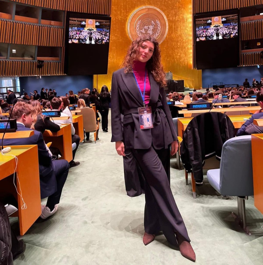 Ha partecipato attivamente alle sessioni di confronto, collaborando con delegati di altre nazioni per elaborare e approvare una resolution volta a promuovere l’uguaglianza politica di genere nei governi. Durante le attività di commissione si sono susseguiti numerosi interventi strutturati e momenti di negoziazione, che le hanno permesso di mettere alla prova le proprie capacità argomentative in un contesto altamente competitivo e internazionale. Il confronto costante con studenti provenienti da diversi sistemi culturali e accademici ha rappresentato un’importante occasione di crescita, rafforzando le sue competenze linguistiche, diplomatiche e relazionali.